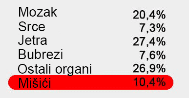 Kao što jasno vidite, samo mali dio energije dobivene iz hrane troši se na mišiće. Dakle,